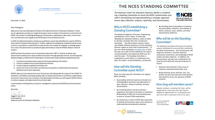 2024-28: Standing Committee Member, National Center for Education Statistics